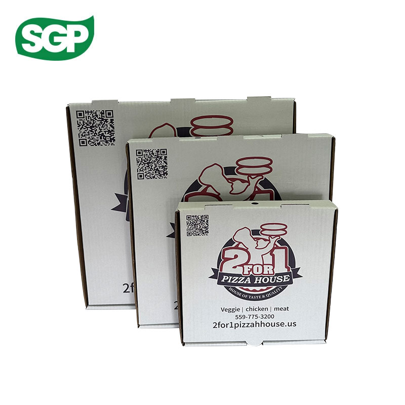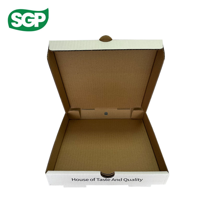 Made from durable, food-safe corrugated cardboard, our white pizza boxes are engineered to withstand the rigors of transport. The single-walled corrugated structure (with optional B flute for extra sturdiness) prevents crushing, maintains shape, and blocks grease leakage—keeping pizzas hot, fresh, and visually appealing from oven to customer. The material is non-toxic and compliant with global food packaging standards, ensuring complete safety for your offerings.