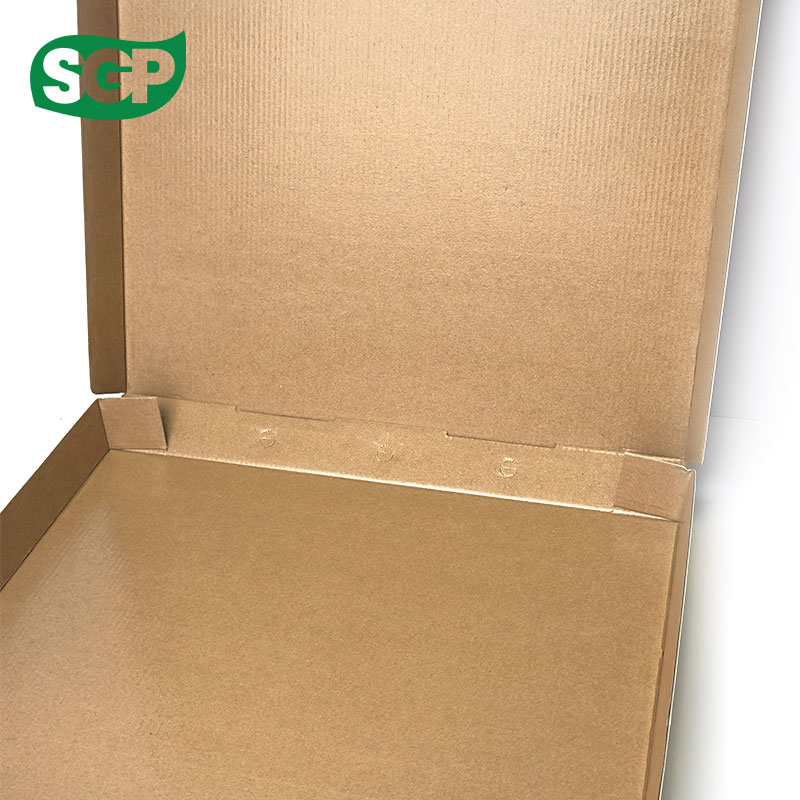 At the core of our pizza boxes is food-safe corrugated pizza boxes construction that prioritizes both safety and performance. The single-walled corrugated structure (with optional B flute for extra sturdiness) prevents grease leakage and maintains shape from oven to doorstep, protecting your pizzas from damage. The durable material ensures the boxes don’t collapse under weight, even during long delivery routes, while the food-grade certification guarantees no harmful chemicals come into contact with your food – a non-negotiable for customer trust.